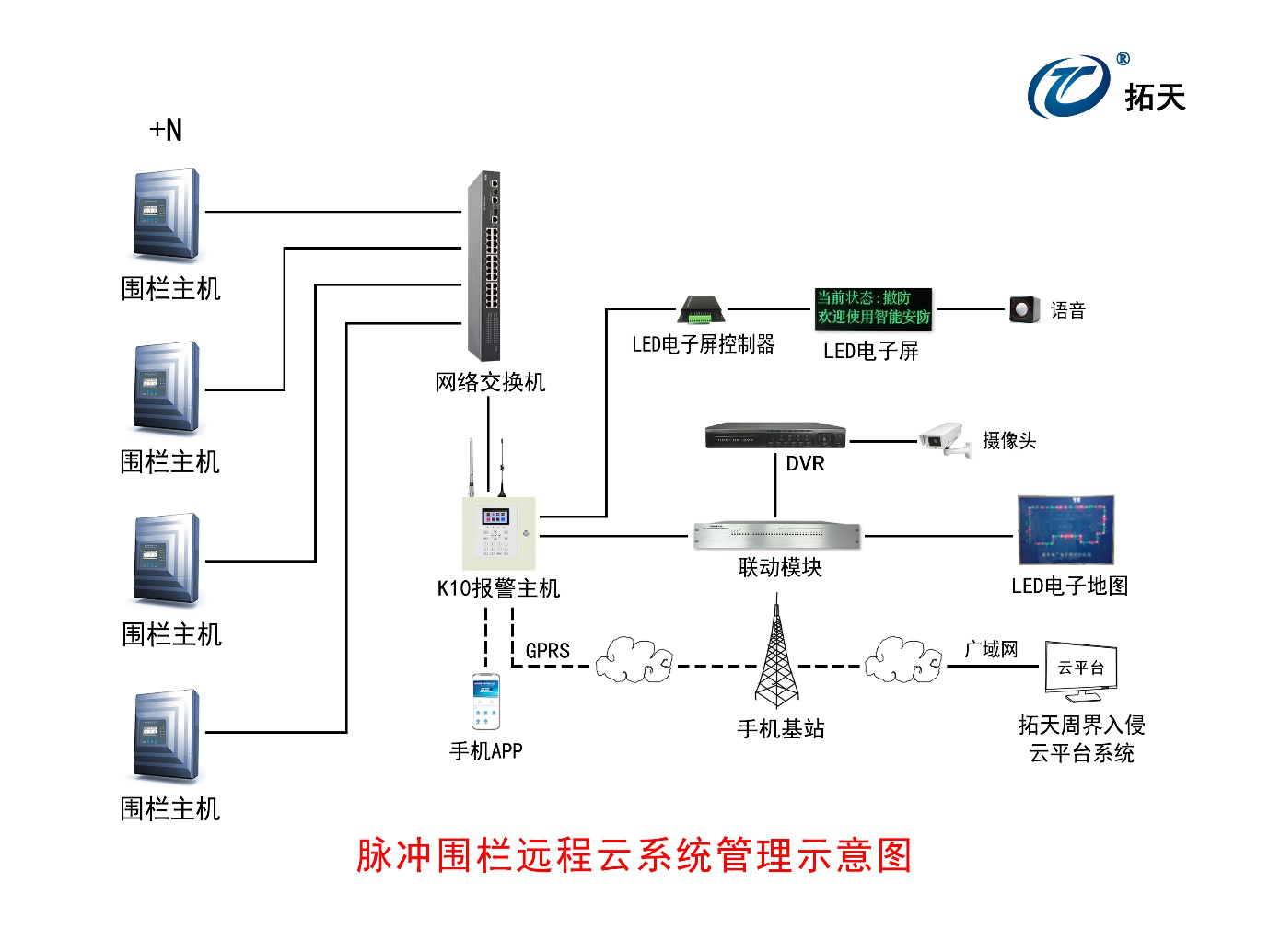 可與周界報(bào)警設備(bèi) GPRS報(bào)警主機通過手機卡連廣域網雲服務器